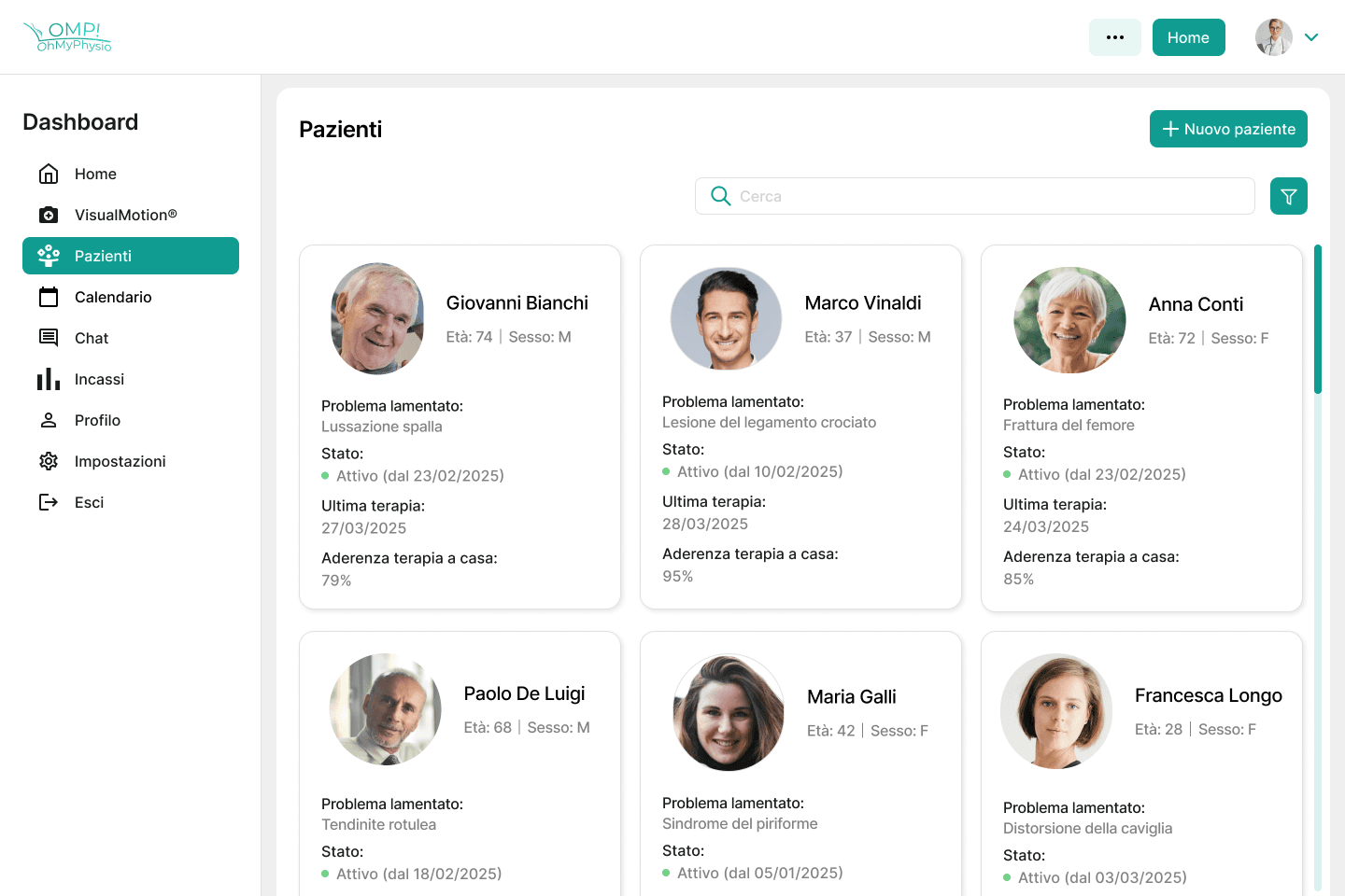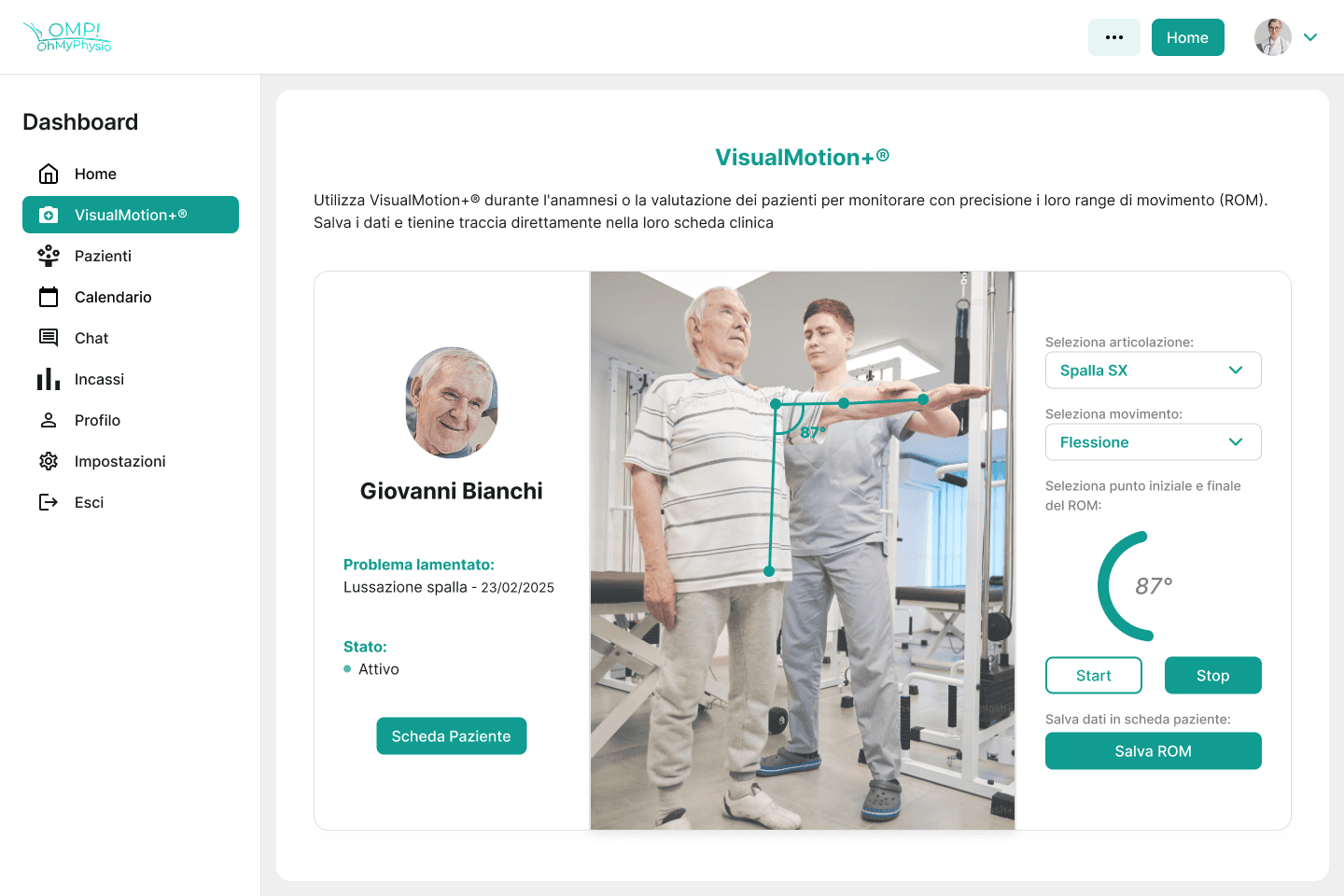 Crea e carica il piano di riabilitazione personalizzato su OMP! e comunica il codice d'accesso al tuo paziente